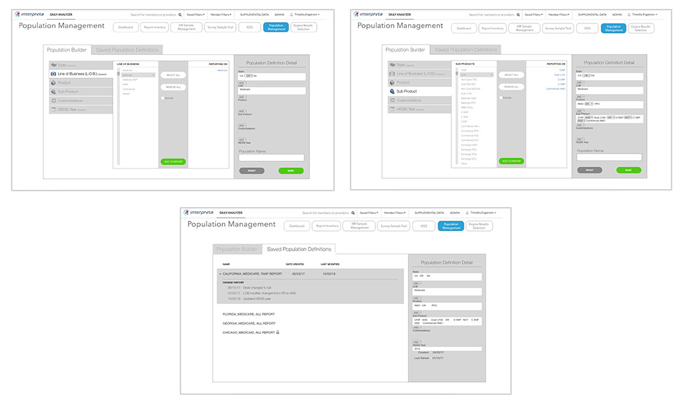 The evolution to the Population Management tool took great strides in visualizing the tool, and understanding how to make it more dynamic for the user. Delivering real-time population numbers and advanced expression building made the tool exceed the expectations of the product owner.