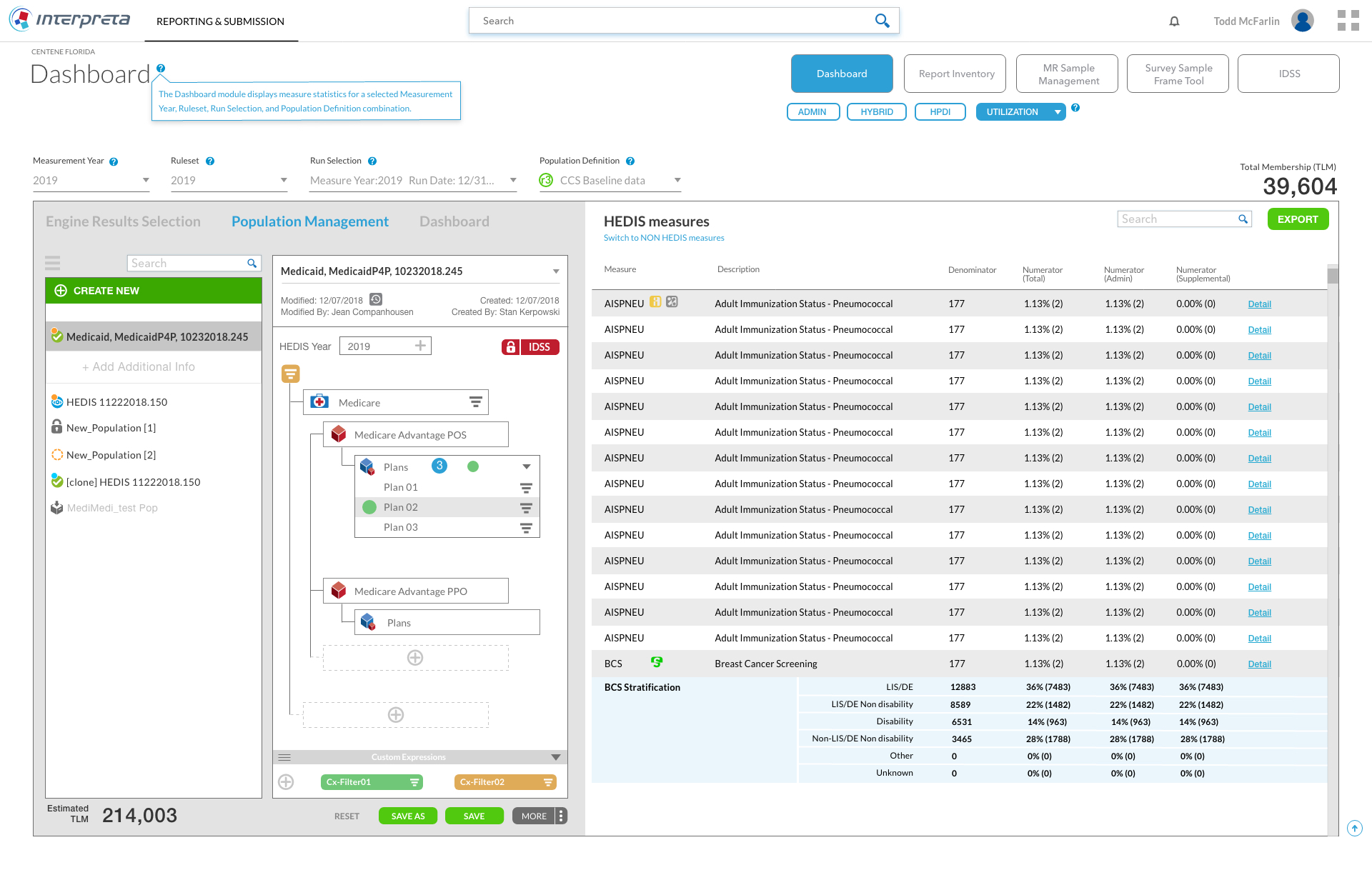 Interpreta is the leading healthcare analysis tool for managing patient care and navigating mandated requirements. The Population Management tool is part one of a larger project to be used in capturing data for reporting and submissions to NCQA and HEDIS.